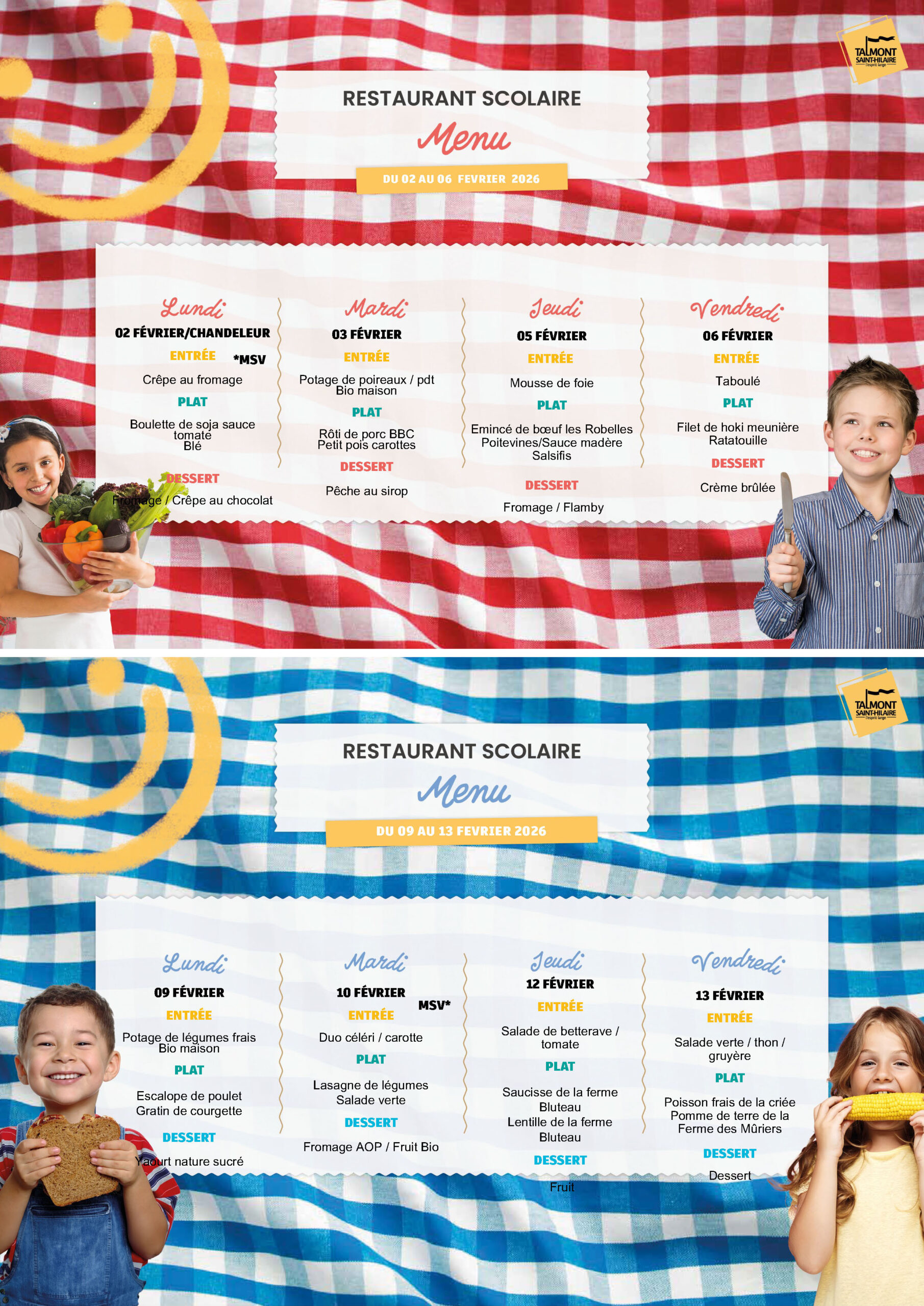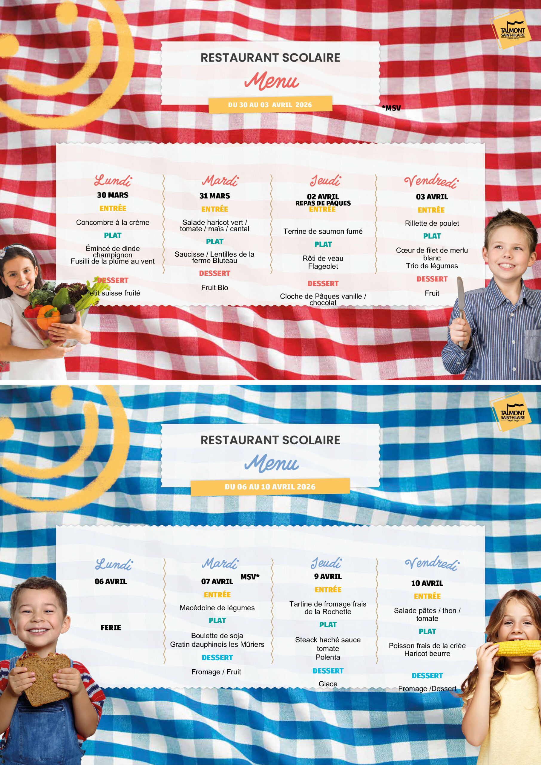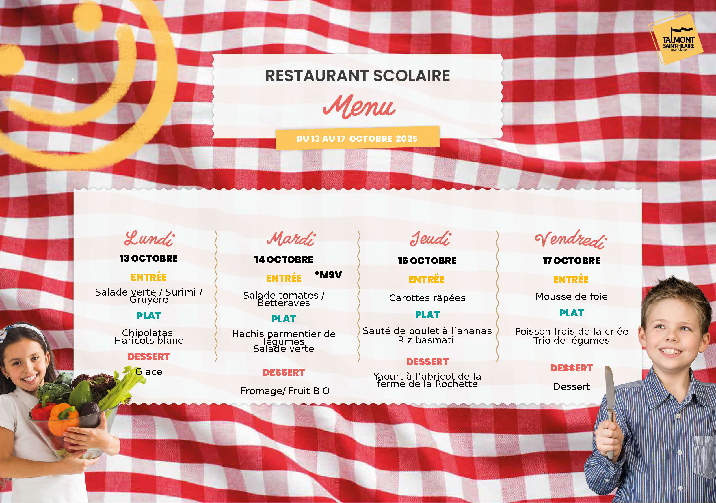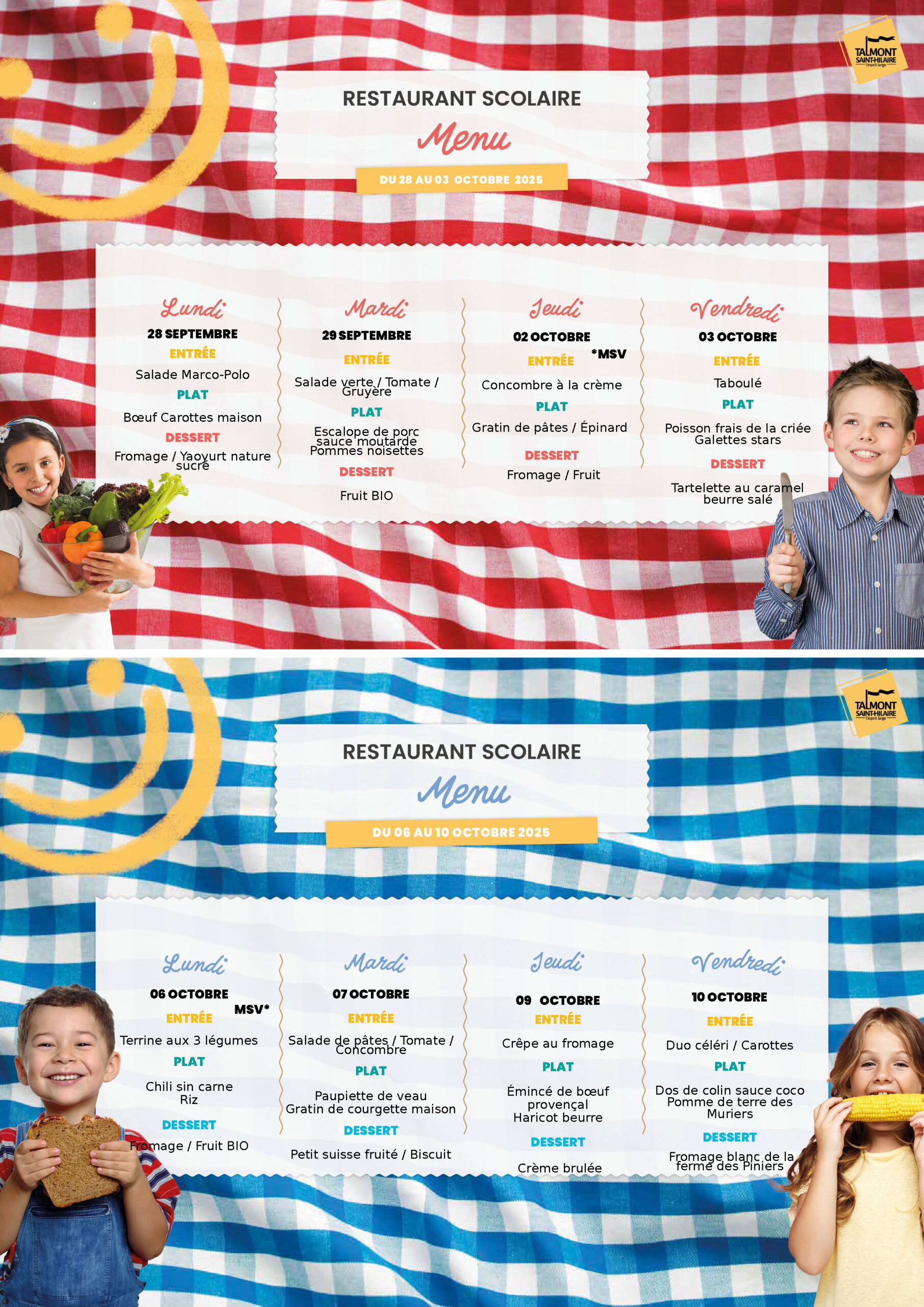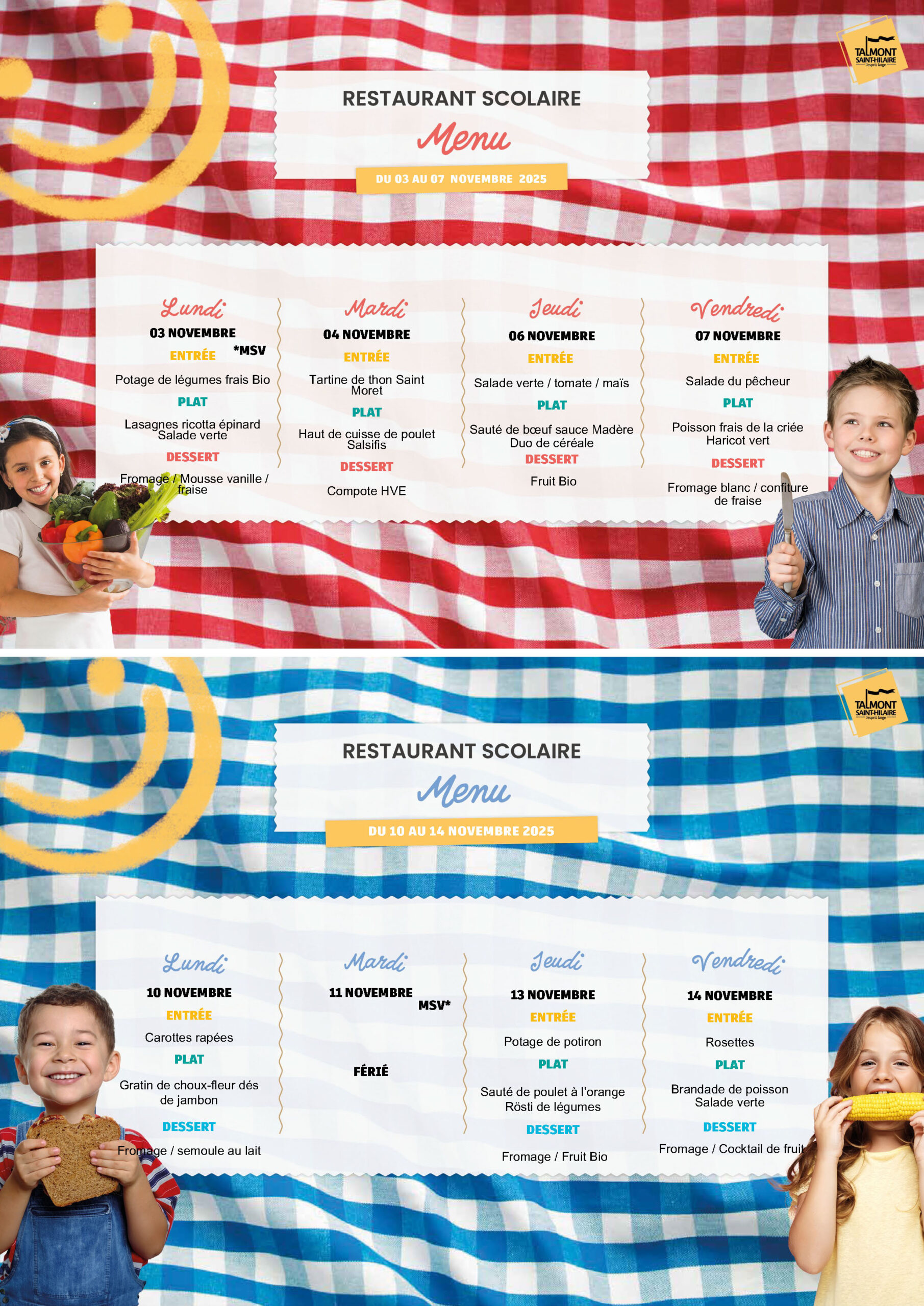 Accueil » Vivre à Talmont » Enfance/Jeunesse » Vie scolaire » Restaurant scolaire » Menus